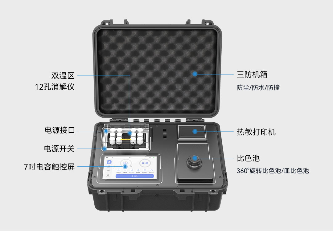 雙便攜箱設(shè)計,為戶外水質(zhì)檢測提供了強大的戶外應(yīng)用支持,該儀器具備雙溫區(qū)消解功能,6+6孔雙溫區(qū)設(shè)計,可以滿足多指標(biāo)消解的需求。此外,儀器還內(nèi)置了大容量鋰電池,綜合工況下工作續(xù)航能力長達8小時,為戶外長時間使用提供了強有力的支持。
