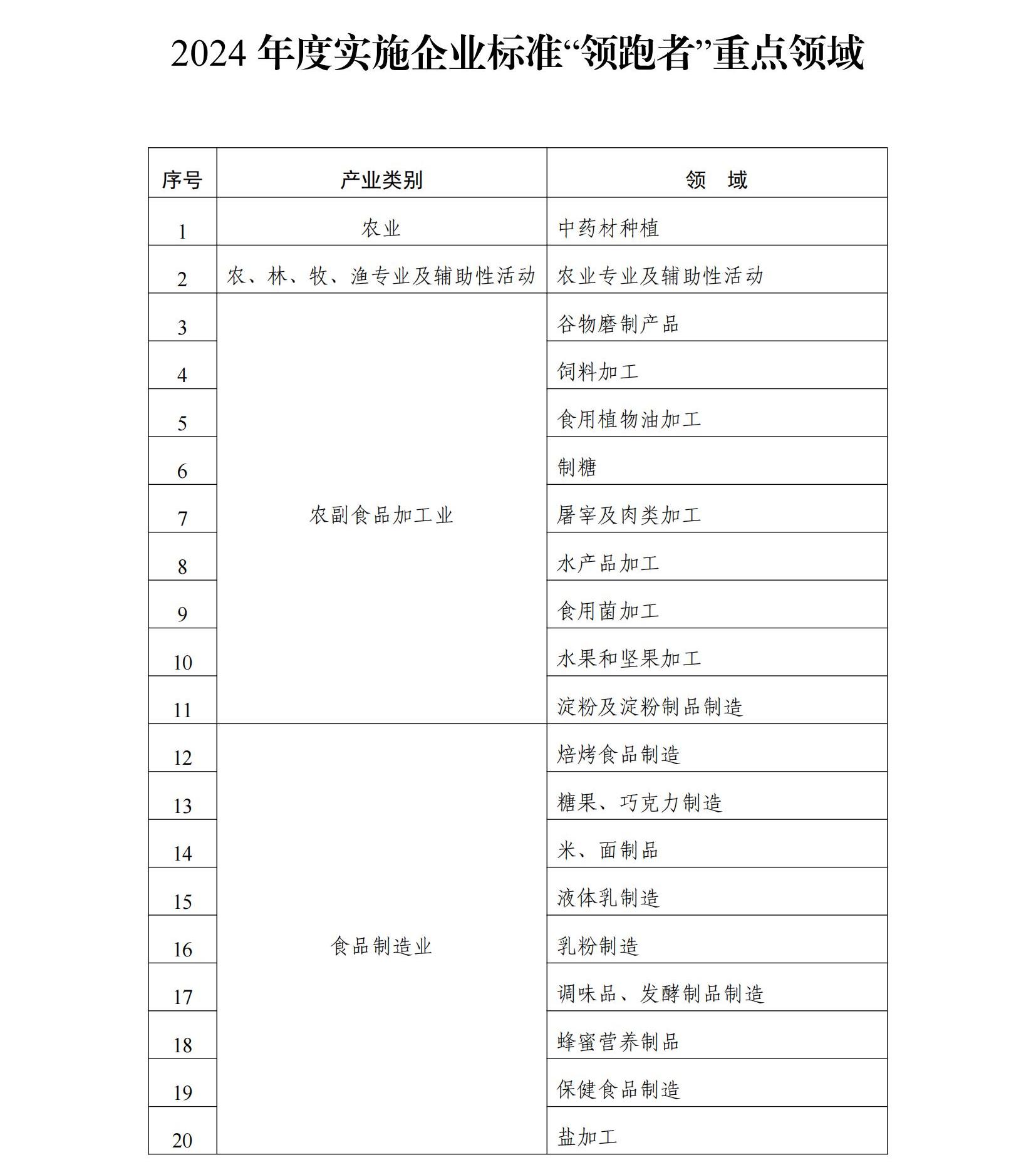 6月20日,市場監(jiān)管總局發(fā)布公告,為貫徹落實《國家標準化發(fā)展綱要》《推動大規(guī)模設備更新和消費品以舊換新行動方案》等要求,依據(jù)《市場監(jiān)管總局等八部門關于實施企業(yè)標準“領跑者”制度的意見》,市場監(jiān)管總局會同國務院有關部門,深入貫徹新發(fā)展理念,以促進消費、擴大內(nèi)需,引領綠色消費,促進新質(zhì)生產(chǎn)力發(fā)展等為目標,圍繞產(chǎn)業(yè)高質(zhì)量發(fā)展、綠色低碳轉(zhuǎn)型,統(tǒng)籌考慮國際標準化組織(ISO)、國際電工委員會(IEC)標準戰(zhàn)略中的重點領域、企業(yè)標準自我聲明公開情況、消費者關注度以及標準對產(chǎn)品和服務質(zhì)量提升效果,提出《2024年度實施企業(yè)標準“領跑者”重點領域》。