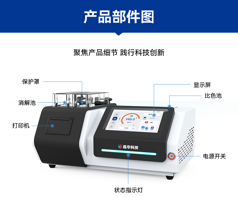 除了以上這些亮點,LH-C500的檢測項目還完全符合國家行業(yè)標準,如COD-《HJ/T399-2007》、氨氮-《HJ535-2009》、總磷-《GB11893-89》等,讓用戶在檢測過程中更加放心、安心。同時,產(chǎn)品配套齊全,包括各種液體耗材、密封反應(yīng)管、冷卻架、管比色架、比色皿座、移液槍、定量器、一機打印紙等,讓用戶在使用過程中更加省心、便捷。