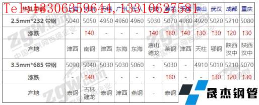 全國12個(gè)主要市場2.5mm*232 帶鋼平均價(jià)格5023元/噸,較上個(gè)交易日上調(diào)26元/噸。