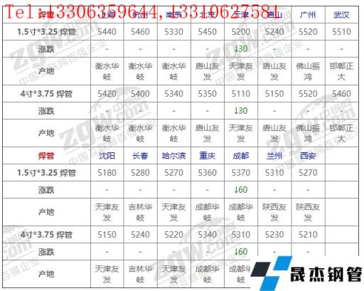 全國15個主要市場4寸*3.75 焊管平均價格5297元/噸,較上個交易日下調6元/噸。