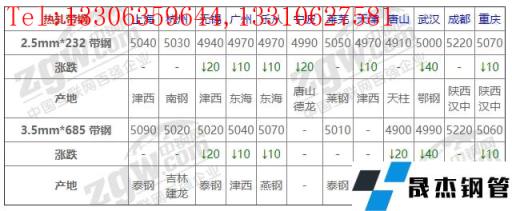 全國12個(gè)主要市場2.5mm*232 帶鋼平均價(jià)格5013元/噸,較上個(gè)交易日下調(diào)10元/噸。